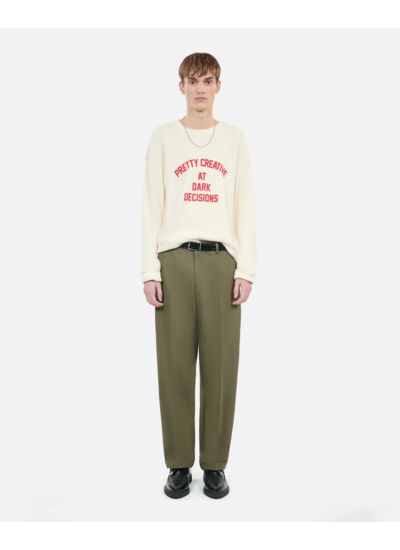 Fabriqué avec soin, ce sweatshirt présente une coupe large, un col rond, des manches longues et des bords côtes aux poignets et à la base. La sérigraphie placée sur le devant ajoute une signature graphique unique, fidèle à l’esprit créatif de la marque.