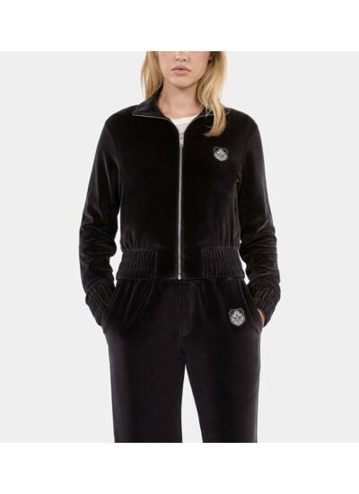 Confectionné en velours doux, ce sweatshirt offre une texture riche et un tombé impeccable. Son logo en velours apporte un relief subtil et une signature visuelle distinctive, parfaite pour celles qui veulent allier simplicité et originalité. Sa coupe féminine épouse délicatement la silhouette sans sacrifier la liberté de mouvement.