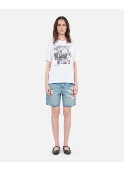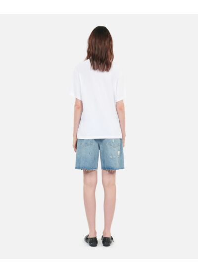 Fabriqué par The Kooples, ce modèle se distingue par son coton délavé de qualité, sa coupe droite classique, son col rond et ses manches courtes. La sérigraphie placée sur le devant apporte une signature visuelle unique, fidèle à l’esprit de la marque.