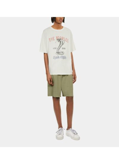 Conçu pour allier confort et caractère, ce T-shirt à col rond et manches courtes se distingue par son imprimé Snake en sérigraphie, qui apporte une touche graphique et contemporaine. Sa teinte écrue neutre facilite les associations, du jean brut aux pantalons plus habillés, pour une silhouette urbaine et élégante.