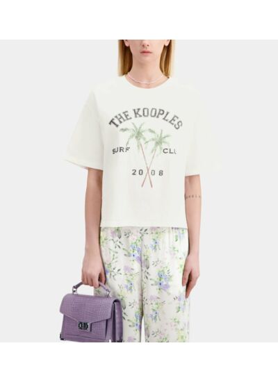 Col rond, manches courtes, sérigraphie Surf Club devant. Marque : The Kooples.