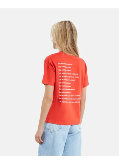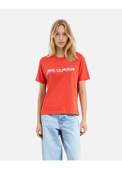 Fabriqué en jersey de coton épais, ce T-shirt manches courtes présente une coupe droite avec un col rond et une sérigraphie strassée sur le devant. La marque The Kooples signe une pièce à la fois qualitative et stylée, disponible en plusieurs tailles.