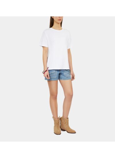 Affirmez votre style avec ce t-shirt manches courtes orné de strass, une pièce qui allie audace et élégance. Sa coupe courte et ses détails sophistiqués subliment chaque silhouette avec modernité.
