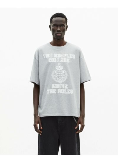 Fabriqué en jersey de coton délavé, ce T-shirt présente une coupe large, un col rond classique, des manches courtes et un imprimé sérigraphié complété par une broderie emblématique The Kooples college.