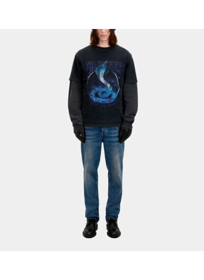 Fabriqué en coton lavé, il présente un col rond classique et des manches courtes. La sérigraphie est placée sur le devant pour un impact visuel immédiat. Disponible dans une coupe homme, ce modèle allie qualité et style.
