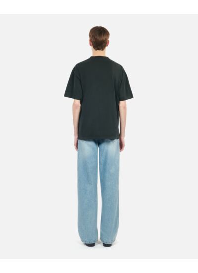 Fabriqué en coton délavé, ce T-shirt manches courtes présente une coupe oversize, un col rond, une sérigraphie devant et des bords côtes contrastés pour une finition soignée.