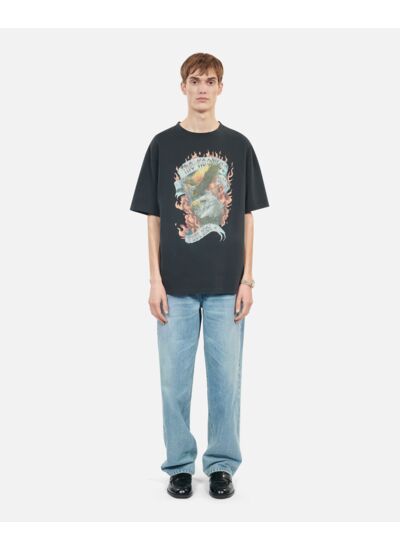 Confectionné en coton délavé, ce t-shirt offre une texture douce et un aspect vintage unique. Sa coupe large et ses manches courtes assurent un confort optimal tout en valorisant une silhouette décontractée. Le col rond classique vient parfaire un design minimaliste, rehaussé par la sérigraphie placée sur le devant, qui apporte une touche graphique et moderne.