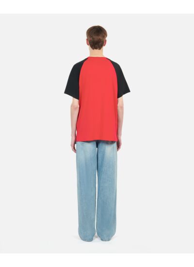Fabriqué en coton de qualité, il présente une coupe large, un col rond, des manches courtes contrastées et une sérigraphie frontale qui souligne son caractère unique.
