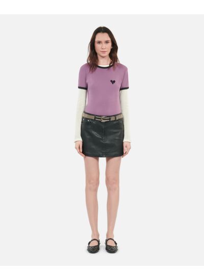 Confectionné en coton délavé, ce t-shirt allie douceur et légèreté pour un porté agréable toute la journée. Le col rond et les manches courtes apportent une touche classique, tandis que les bords côtes contrastés et le flocage Kooples Heart signent une identité forte et contemporaine. Parfait pour dynamiser vos looks casual ou urbains.