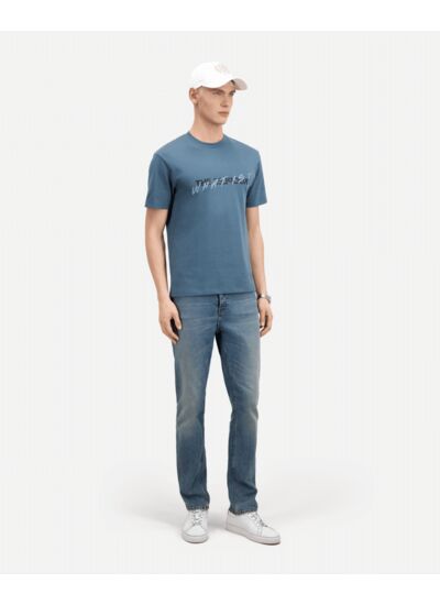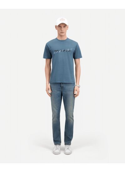 Fabriqué en jersey de coton épais, ce modèle présente un col rond et des manches courtes. Les sérigraphies sont placées à l’avant en bleu et noir, et au dos en noir, pour un rendu graphique et moderne.