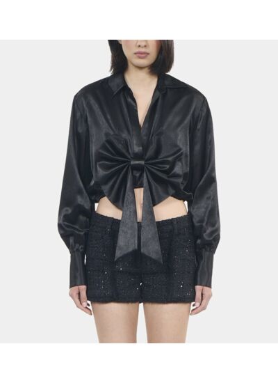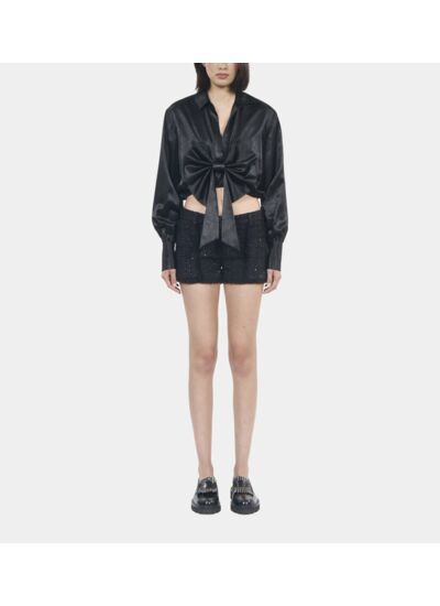 Affirmez votre style avec ce top noir signé The Kooples, alliant élégance et modernité. Sa coupe courte et ample, rehaussée d’un nœud devant, apporte une touche audacieuse à toutes vos tenues.