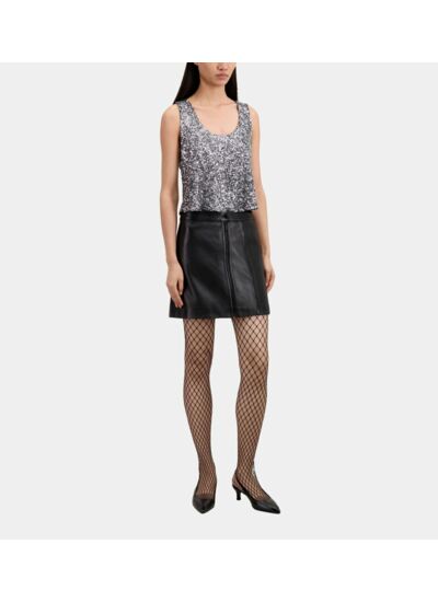 Brillez intensément avec ce top argenté à sequins signé The Kooples, l’alliance parfaite entre audace et élégance. Son design court et sans manches sublime votre silhouette tout en captant la lumière à chaque mouvement.