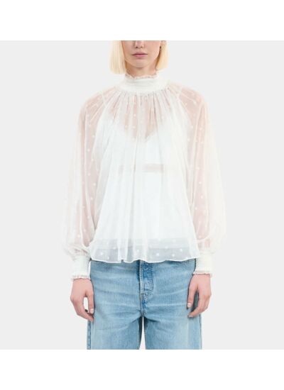Marque : The Kooples. Couleur : écru. Coupe : fluide avec fronces. Matière : tissu léger et confortable. Entretien : lavage en machine à froid recommandé.