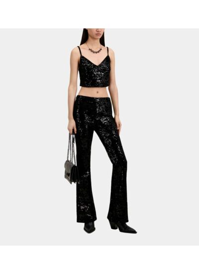 Ce top vous offre un confort optimal grâce à ses bretelles ajustables et une silhouette flatteuse qui met en valeur votre taille. Son tissu en velours doux garantit une sensation agréable sur la peau, tandis que les sequins ajoutent une dimension sophistiquée sans sacrifier la sobriété.