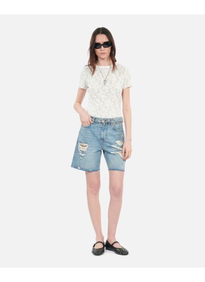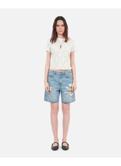 Marque : The Kooples. Coupe ajustée. Col rond. Manches courtes. Matière principale en dentelle écrue.