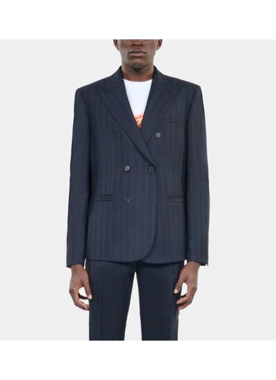 Confectionnée dans un tissu de qualité, cette veste allie structure et confort grâce à sa coupe ajustée qui souligne la silhouette sans contraindre. Les rayures bleues apportent une touche dynamique et contemporaine, idéale pour se démarquer avec subtilité. Polyvalente, elle se marie aisément avec un pantalon uni ou un jean pour un look casual chic.