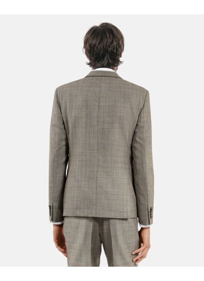 Fabriquée en laine prince de Galles avec tissu italien, cette veste présente une coupe slim ajustée. Elle dispose d’un col cranté, d’une fermeture deux boutons, de poches passepoilées et à rabat, ainsi que de boutons en corne. Deux fentes au dos assurent une meilleure liberté de mouvement. Si vous hésitez entre deux tailles, privilégiez la taille supérieure.