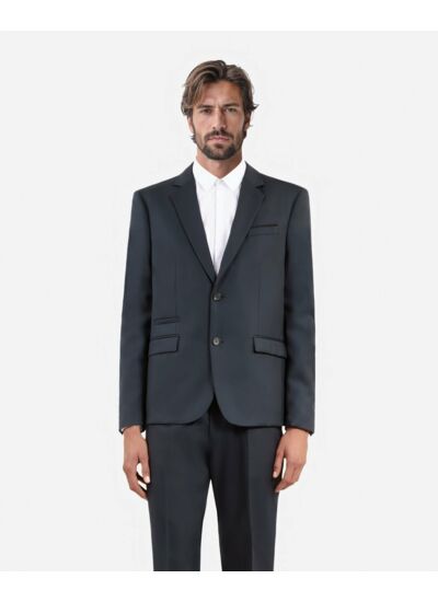 Réponse. Elle possède un col cranté, des boutons en corne aux poignets, des poches passepoilées et à rabat, ainsi que deux fentes au dos pour plus de confort.