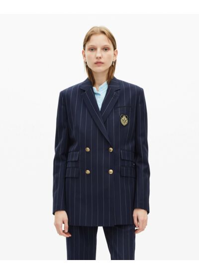Conçue en laine mélangée, cette veste épouse légèrement la taille pour une coupe féminine et sophistiquée. Son col cranté et ses manches longues soulignent un style classique revisité, tandis que les boutons héritage et le patch blason à la poitrine apportent une touche d’authenticité et de raffinement. Portez-la en journée ou en soirée, seule ou coordonnée avec le pantalon assorti pour un look parfaitement maîtrisé.