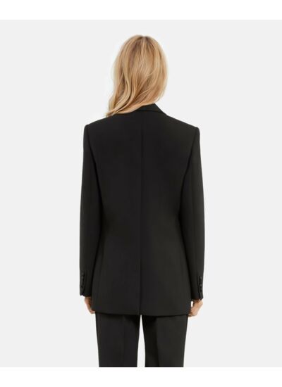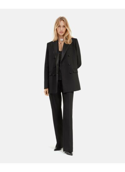 Marque : The Kooples. Coupe droite. Revers en pointe en satin. Manches longues. Fermeture double boutonnage. Poches passepoilées et à rabat. Boutons recouverts en satin et boutons aux poignets.