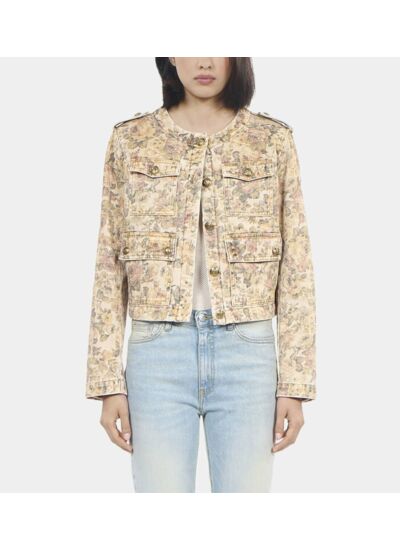 Marque : The Kooples. Modèle : blouson femme à imprimé fleur. Coupe ajustée. Matière légère et agréable à porter. Fermeture zippée. Poches latérales discrètes.