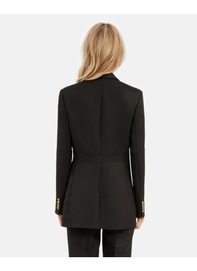Fabriquée par The Kooples, cette veste présente une coupe droite ajustée avec col cranté, manches longues, fermeture trois boutons, boutons aux poignets et quatre poches plaquées à rabat. Les boutons héritage apportent une signature distinctive. En cas de doute entre deux tailles, privilégiez la taille supérieure.