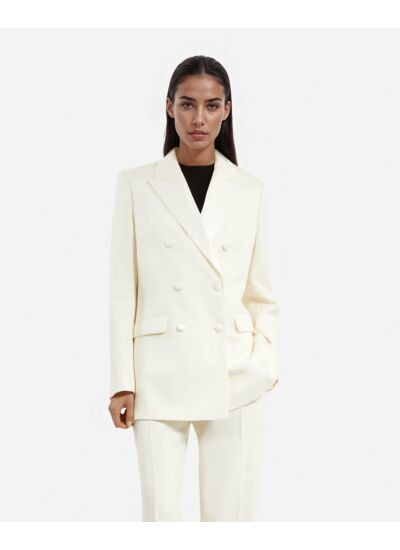 Veste femme The Kooples, coupe droite, revers en pointe en satin, manches longues, boutons aux poignets, fermeture double boutonnage, poches passepoilées et à rabat, boutons recouverts en satin. Pour un look complet, associez-la au modèle FPAN30037KECR01.