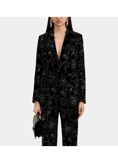 Affirmez votre style avec cette veste tailleur noire en velours signée The Kooples, sublimée par un imprimé fleuri glitters qui capte la lumière à chaque mouvement. Une pièce élégante et moderne, pensée pour révéler votre allure avec audace.