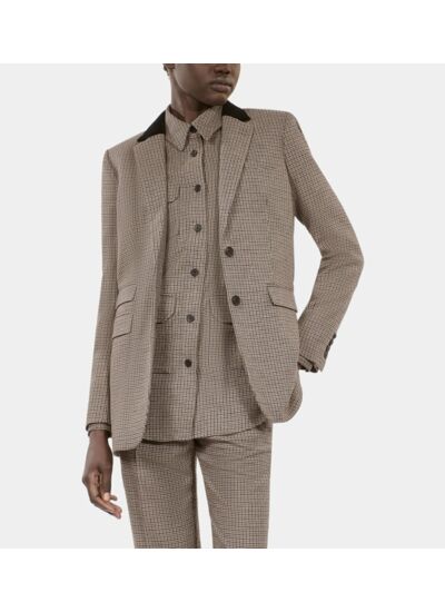 Affirmez votre style avec cette veste tailleur pied de poule beige, une pièce incontournable pour une allure sophistiquée et moderne. Signée The Kooples, elle incarne l’élégance urbaine avec une touche intemporelle.