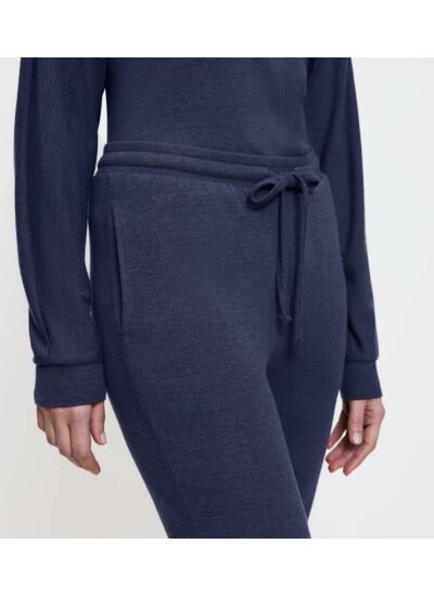 These knit-alike trousers offer comfort and practicality, featuring a drawstring waistband, side pockets, and cuffed hems. They are crafted from a soft, cosy fabric blend, made of 51% certified Lenzing EcoVero viscose and 30% recycled polyester.