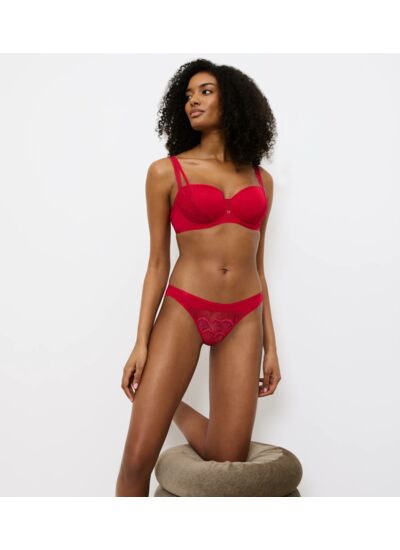 This brazilian, featuring a trendy V-shape front detail and delicate lace, offers a seductive yet comfortable fit. Crafted from recycled GRS-certified materials, it offers a stylish and voluptuous silhouette.