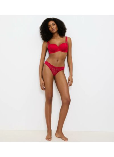 This string, featuring a trendy V-shape front detail and delicate lace, offers a seductive yet comfortable fit. Crafted from recycled GRS-certified materials, it offers a stylish and voluptuous silhouette.