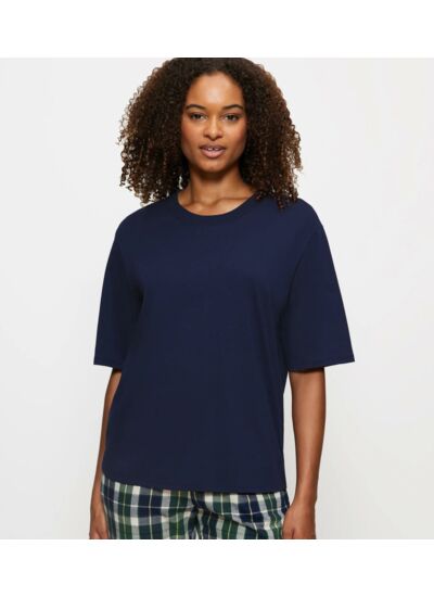 This top, featuring 3/4 sleeves, is a versatile essential suitable for any season. Its rib crew neck and relaxed boxy shape, bring a contemporary flair to this everyday piece. Crafted from 100% breathable GOTS certified organic cotton, this top ensures your comfort transitions from night to morning.