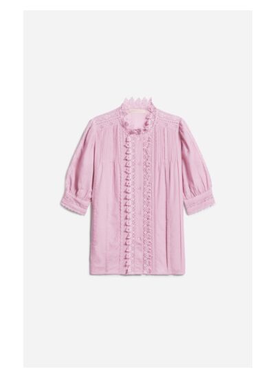 La blouse Arseneneo incarne une élégance intemporelle grâce à ses détails délicats et féminins. Confectionnée en coton, rehaussée de détails brodés et ajourés, elle offre un confort raffiné. Son col montant est sublimé par une broderie en dentelle florale qui ajoute sa touche romantique. Sur le devant, la blouse présente un travail de plis et de broderies, qui renforcent son charme sophistiqué. Les manches, mi-longues, légèrement bouffantes avec des poignets ornés de dentelle. Sa coupe aérienne est idéale pour un style décontracté à porter seul ou sous un pull, en laissant apparaître son col.