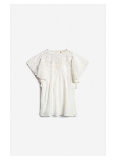 La blouse Calisson est délicate et féminine avec des détails de dentelles et de plissage sur l',encolure et ses manches volantées. C',est une blouse inspiration vintage avec un esprit victorien rehaussé.