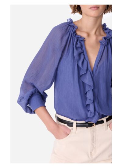 Fluide et semi-transparente, la blouse Eileen est élégante et romantique grâce à ses détails délicats. Le col en V est sublimé par un volant qui s',étend le long de l',encolure, ajoutant une touche féminine et raffinée. Les manches longues légèrement bouffantes, resserrées aux poignets par des smocks, apportent une silhouette fluide et légère. Confectionnée dans un tissu semi-transparent, cette blouse est idéale pour une tenue chic et confortable. Portez-la avec un jean taille haute pour un look moderne ou associez-la à une jupe pour une allure plus sophistiquée.
