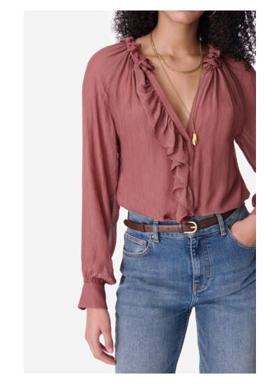 Fluide et semi-transparente, la blouse Eileen est élégante et romantique grâce à ses détails délicats. Le col en V est sublimé par un volant qui s',étend le long de l',encolure, ajoutant une touche féminine et raffinée. Les manches longues légèrement bouffantes, resserrées aux poignets par des smocks, apportent une silhouette fluide et légère. Confectionnée dans un tissu semi-transparent, cette blouse est idéale pour une tenue chic et confortable. Portez-la avec un jean taille haute pour un look moderne ou associez-la à une jupe pour une allure plus sophistiquée.