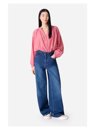 Blouse emblématique de la maison. Sa coupe aérienne confectionnée dans un coton léger et subtilement transparent, fait de Nipoa la blouse romantique par excellence. Avec ses détails de fronces au niveau des manches, sa silhouette se dessine par ses épaules tombantes. Elle se décline cette saison dans un coton rose vif chiné. Elle se porte avec un jean ou une jupe.