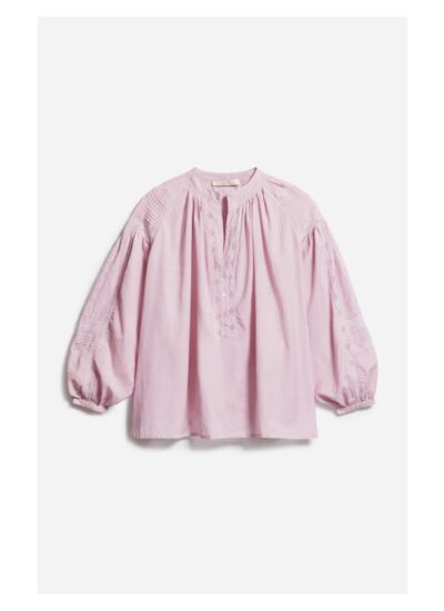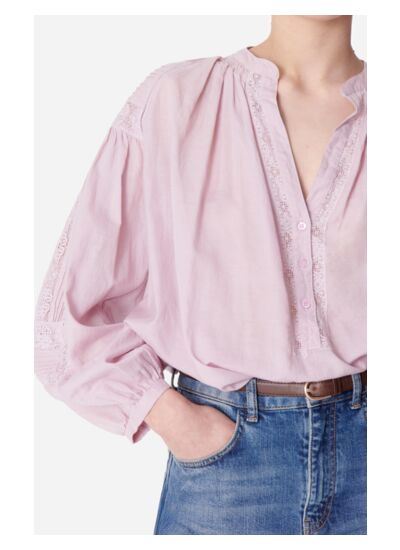 Blouse emblématique de la maison. Sa coupe aérienne confectionnée dans un coton léger, fait de Nipoa la blouse romantique par excellence. Avec ses détails de fronces au niveau des manches, sa silhouette se dessine par ses épaules tombantes. Elle se décline cette saison avec des détails de plis et de dentelle incrustée au niveau des manches et sur le devant de l',ouverture boutonnée. Elle se porte avec un jean ou une jupe.