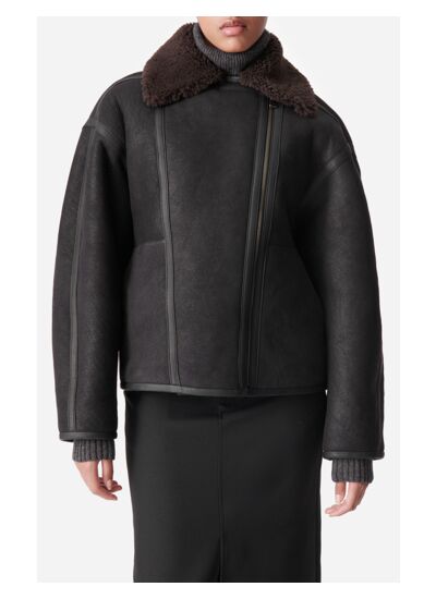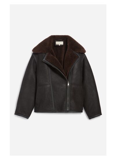 La veste Boris, inspirée du style aviation, est l'essentiel ultime de la fille cool et assurée. Sa coupe légèrement oversize est idéale pour une allure décontractée, tandis que son grand col surproportionné en fourrure shearling ajoute une touche de sophistication et met en valeur son cuir d'agneau couleur chocolat. Pour un effet encore plus oversize, optez pour une taille au-dessus.