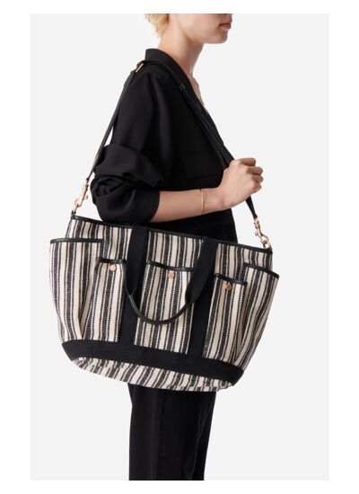 Confectionné dans une toile de coton résistante, ce modèle se distingue par ses multiples poches fonctionnelles, tant à l'intérieur qu'à l'extérieur et ses anses noires fonctionnelles pour les journées chargées. Son grand format, ici couleur kaki, en fait le compagnon idéal pour les aventurières modernes comme pour les jeunes mamans. Pratique et versatile, ce sac zippé avec une bandoulière amovible peut être utilisé comme sac de sport, de voyage ou comme sac à langer.