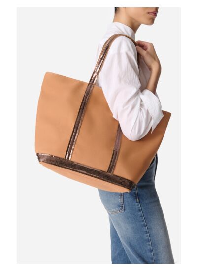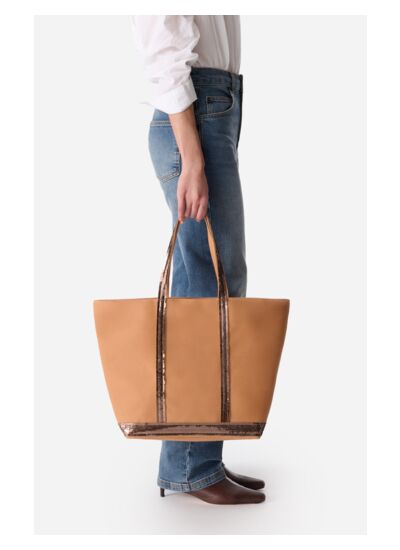 Sac cabas L en toile de coton et sequins.