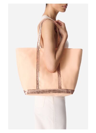 Sac cabas L en toile de coton et sequins.