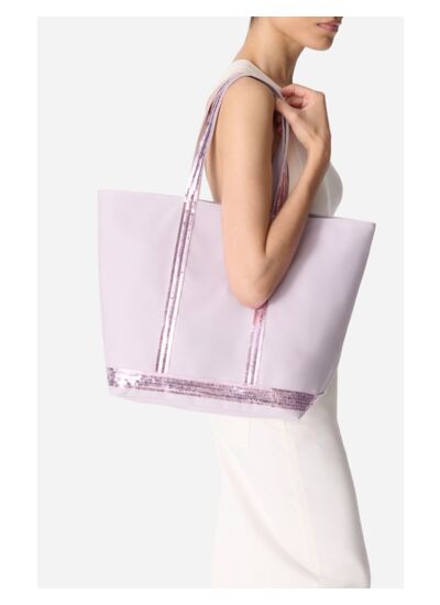 Un ordinateur portable, un dossier A4, un grand livre, une trousse de maquillage... le Cabas L Zippé est le modèle le plus versatile de la gamme et est pensé pour accueillir l',essentiel... et bien plus encore. Equipé de grandes anses qui lui permettent d',être porté à l',épaule, cet accessoire est également pourvu d',une fermeture zippée. Dévoilé en 1998, ce sac en toile de coton ultra-résistante a traversé les époques et est devenu un incontournable de la maison Vanessa Bruno. Rehaussé de sequins, ce modèle est fabriqué dans nos ateliers situés près de Paris, à partir de matériaux sourcés localement et s',adresse à toutes les femmes, de l',étudiante à la jeune maman en passant par la businesswoman.