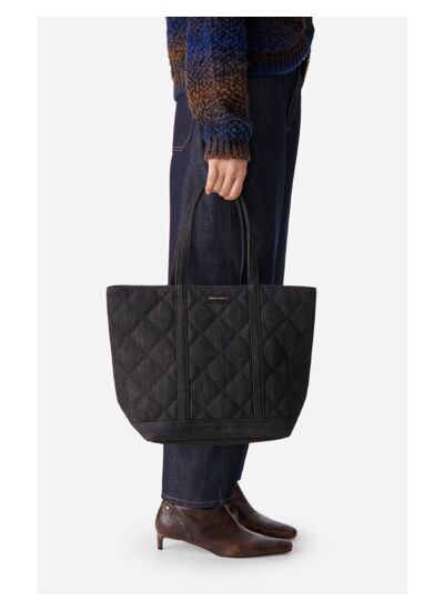 Déclinaison la plus estivale de l'iconique Cabas Vanessa Bruno lancé en 1998, ce modèle en lin, versatile et léger, est le compagnon idéal. Fabriqué en France dans nos ateliers près de Paris, ce Cabas éco-responsable est confectionné en lin belge certifié BelgianLinenTM, qui garantit l'origine européenne de ses graines ainsi que son tissage local. Présenté ici dans sa déclinaison M, ce sac rehaussé de paillettes permet d'emporter légèrement plus que l'essentiel, comme un livre et une trousse de maquillage. Trop petit pour accueillir un ordinateur portable ou un cahier grand format, ce Cabas ne peut faire office de sac de classe. Pour cet usage, préférez-lui le format L.