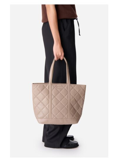 Présenté ici en taille M, le Cabas s',adresse à toutes celles qui aiment emporter un peu plus que l',essentiel (un grand livre, une trousse de maquillage, une tablette) tout en restant élégantes.