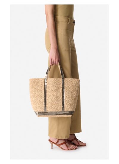 Cabas M en raphia et sequins.