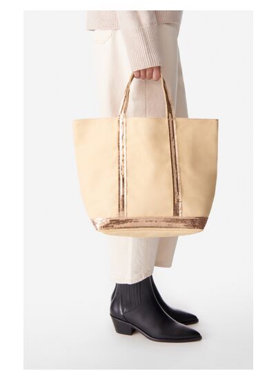 Sac Cabas M en toile de coton et sequins.