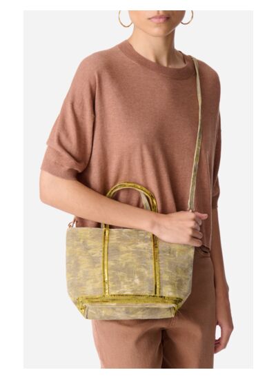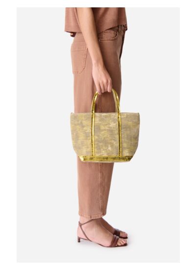 Emblème de la maison Vanessa Bruno depuis 1998, le Cabas s',est élevé au rang de classique. Confectionné dans une toile de coton et de jute ultra-résistante et rehaussé de sequins ludiques et féminins, ce modèle se décline ici au format S, dans des couleurs pastelles esprit tie & dye. La matière jute apporte une rigidité au cabas. Petit, il est équipé d',une bandoulière amovible afin de pouvoir être porté à la main ou en croisé et promet d',accueillir un tout petit peu plus que l',essentiel, à l',image d',un livre de poche ou d',une paire de lunettes de soleil.