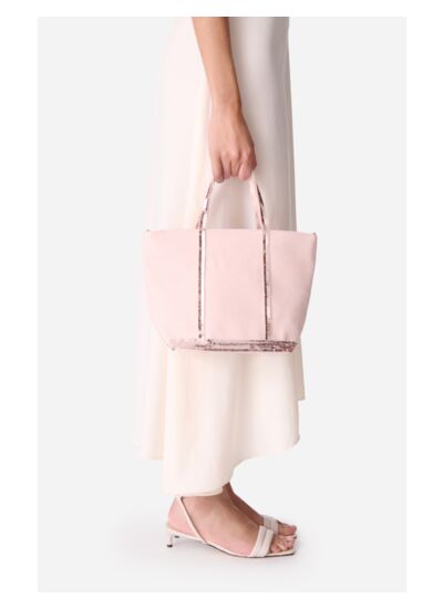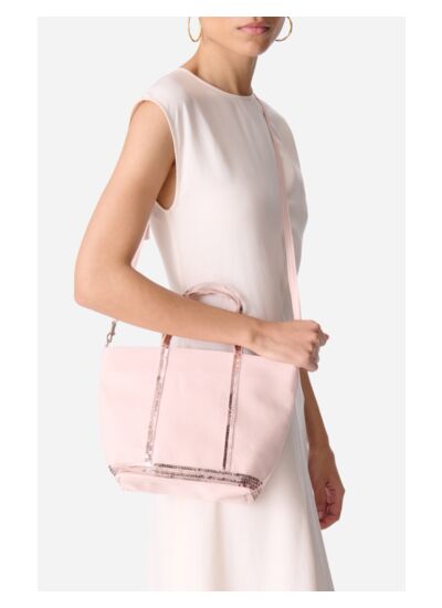 Emblème de la maison Vanessa Bruno depuis 1998, le Cabas s',est élevé au rang de classique. Confectionné dans une toile de coton ultra-résistante et rehaussé de sequins ludiques et féminins, ce modèle se décline ici au format S. Petit, il est équipé d',une bandoulière amovible afin de pouvoir être porté à l',épaule ou en croisé et promet d',accueillir un tout petit peu plus que l',essentiel, à l',image d',un livre de poche ou d',une paire de lunettes de soleil.